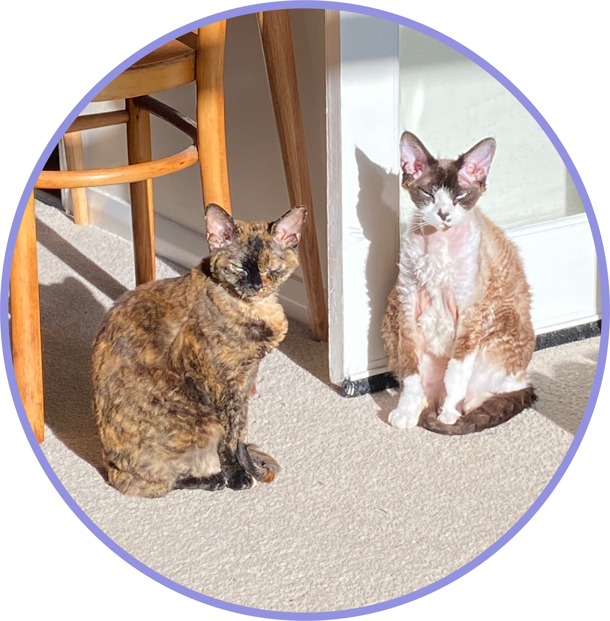 I live in Manchester, UK with my partner, James, and our two Devon Rex cats, Peanut and Pickle